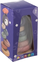 Gracias al material blando y flexible, los bloques también son adecuados para la etapa de dentición. Algunos elementos chirrían al apretarlos, estimulando el oído y aumentando el interés del niño por el juego. El práctico embalaje para regalo con ventana es un detalle encantador y a la vez protege el juguete durante el transporte.
