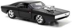 El paquete doble de modelos metálicos con licencia de la película Fast & Furious presenta el dúo icónico: Toyota Supra de Brian y 1970 Dodge Charger de Dom a escala 1:32. Los modelos cuentan con neumáticos de goma, partes abatibles y rueda libre para una conducción fluida y una exhibición con estilo.