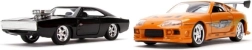 Disfruta de la atmósfera auténtica de la saga cinematográfica con este set de dos modelos metálicos detallados. El Toyota Supra en su icónico color naranja y el Dodge Charger negro con supercargador destacan por su exterior preciso, impresiones de calidad y ruedas de aspecto realista.