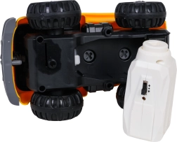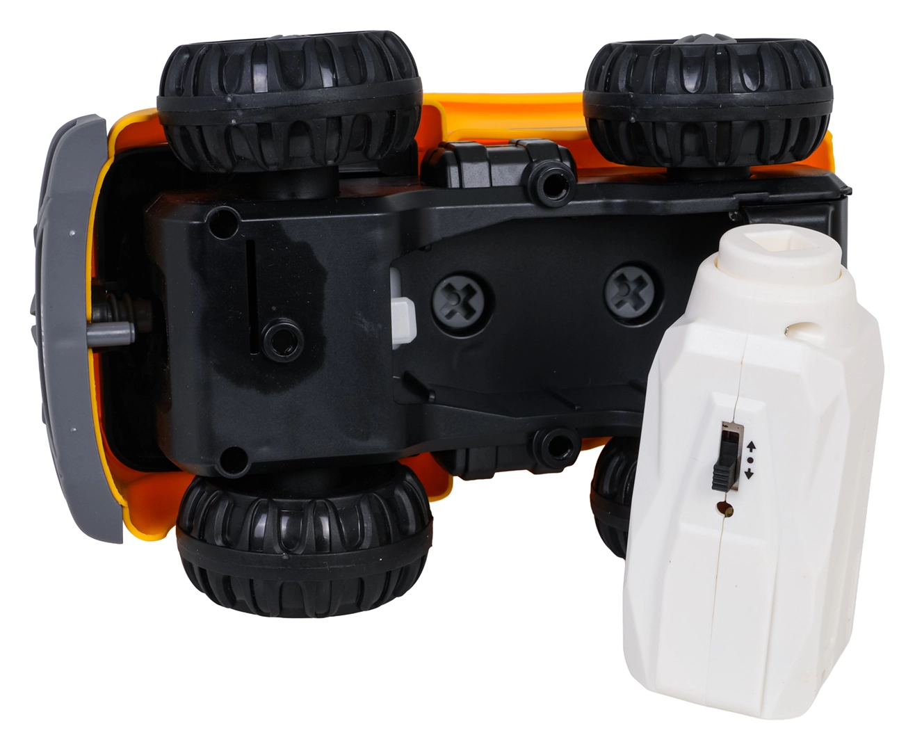 El panel de control especial, al insertarse en el vehículo, permite que el volquete se desplace automáticamente hacia delante o hacia atrás. Elementos realistas como la caja basculante y el techo abatible fomentan la imitación de maquinaria de obra real y desarrollan la imaginación infantil.