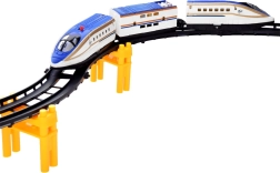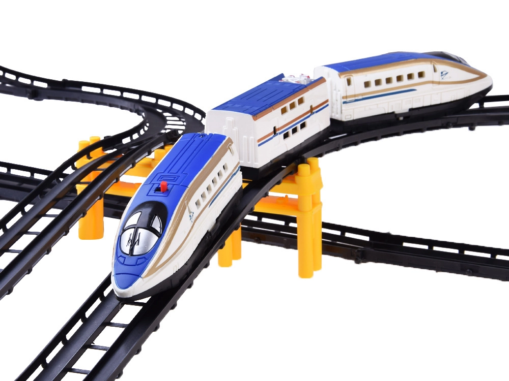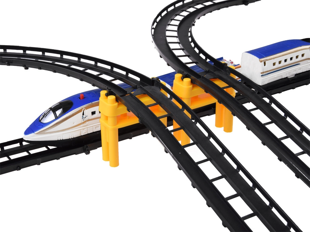 Esta pista de tren de plástico ofrece una conducción realista de un tren moderno de alta velocidad por puentes elevados y tramos curvos. Gracias al diseño estudiado de las vías, el tren mantiene la trayectoria y circula con fluidez por curvas y pendientes. El montaje es rápido, intuitivo y apto para niños: cada pieza encaja de forma segura.