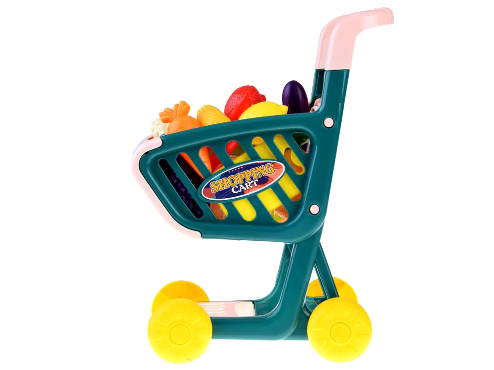 Este carrito de la compra infantil es ideal para jugar al supermercado. Gracias a la resistente cesta de plástico, las ruedas anchas y el asa cómoda, los niños lo manejan con facilidad. Incluye un set variado de frutas y verduras en colores intensos que estimula el juego creativo y el aprendizaje de actividades cotidianas.