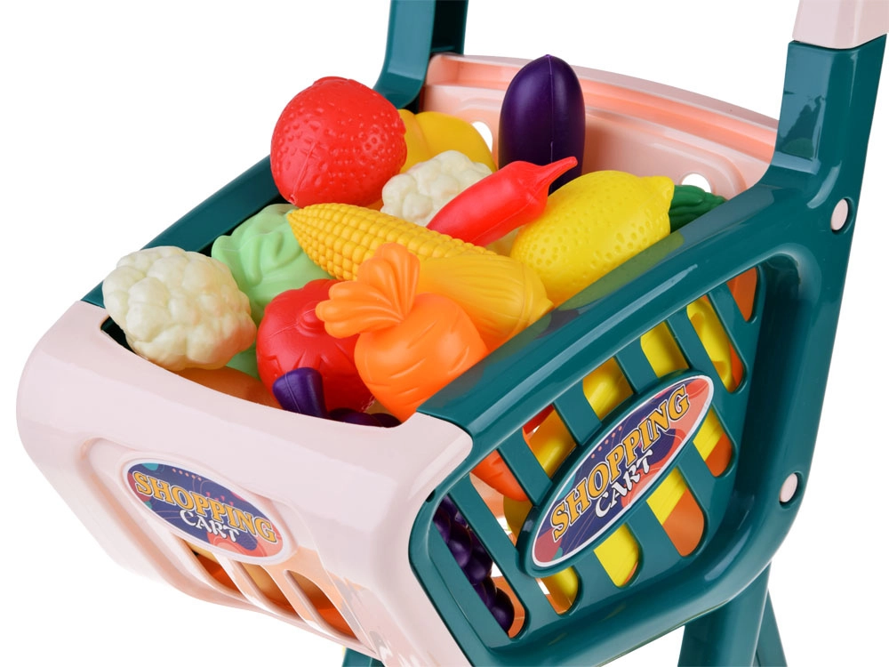 Jugar con el carrito y los alimentos favorece el desarrollo de la motricidad, la comunicación y la cooperación con los amigos. Los niños pueden “comprar”, clasificar los alimentos y prepararlos en la tabla, practicando así la coordinación mano-ojo y adquiriendo nuevos conceptos.
