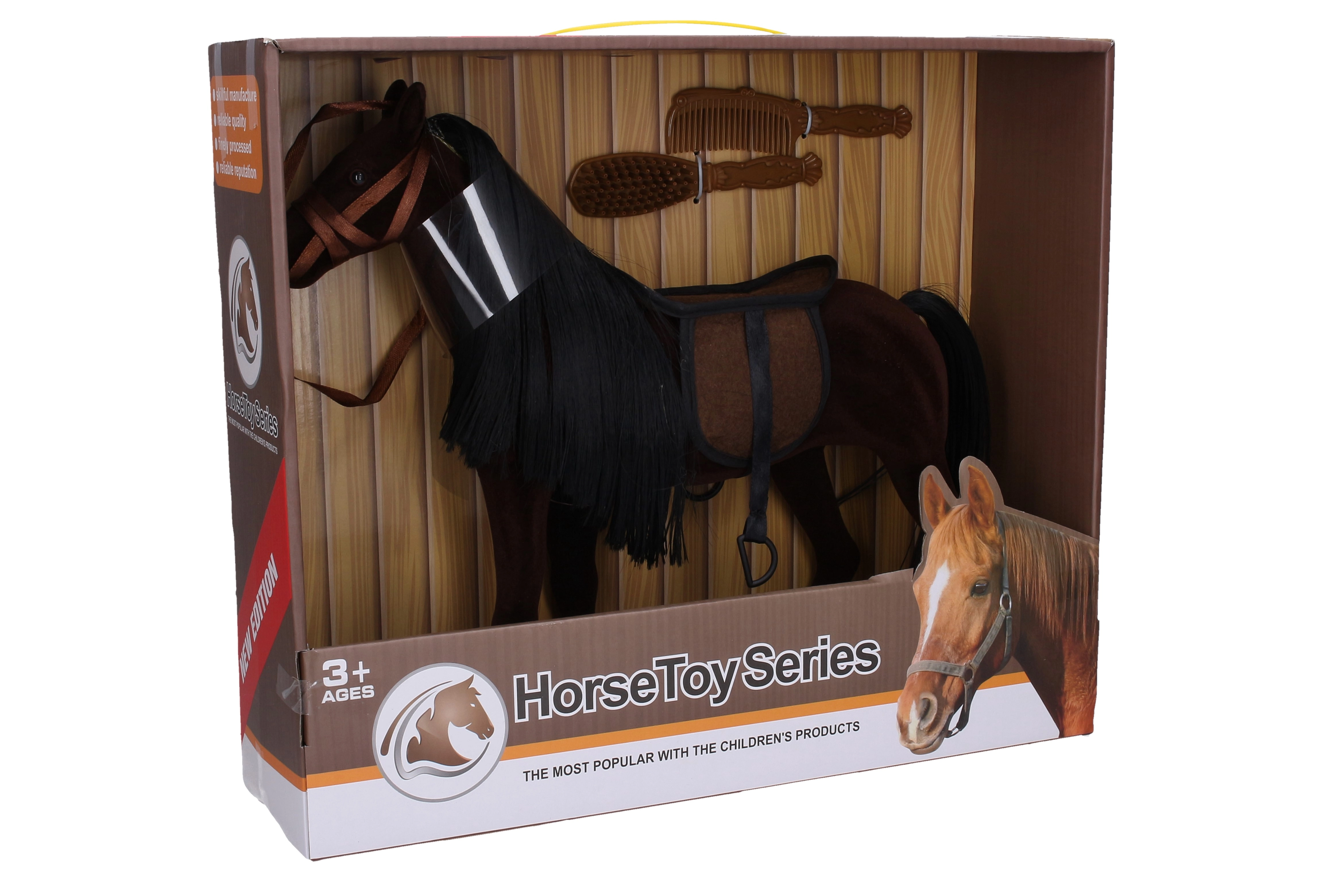 Este caballo de peluche oscuro de 35 cm es un gran compañero para los niños que aman a los animales y cuidar de ellos. Gracias a la silla incluida y a los dos peines, los niños pueden arreglar al caballito, peinarlo y crear sus propias historias. Su confección suave es agradable al tacto y adecuada para el juego diario.