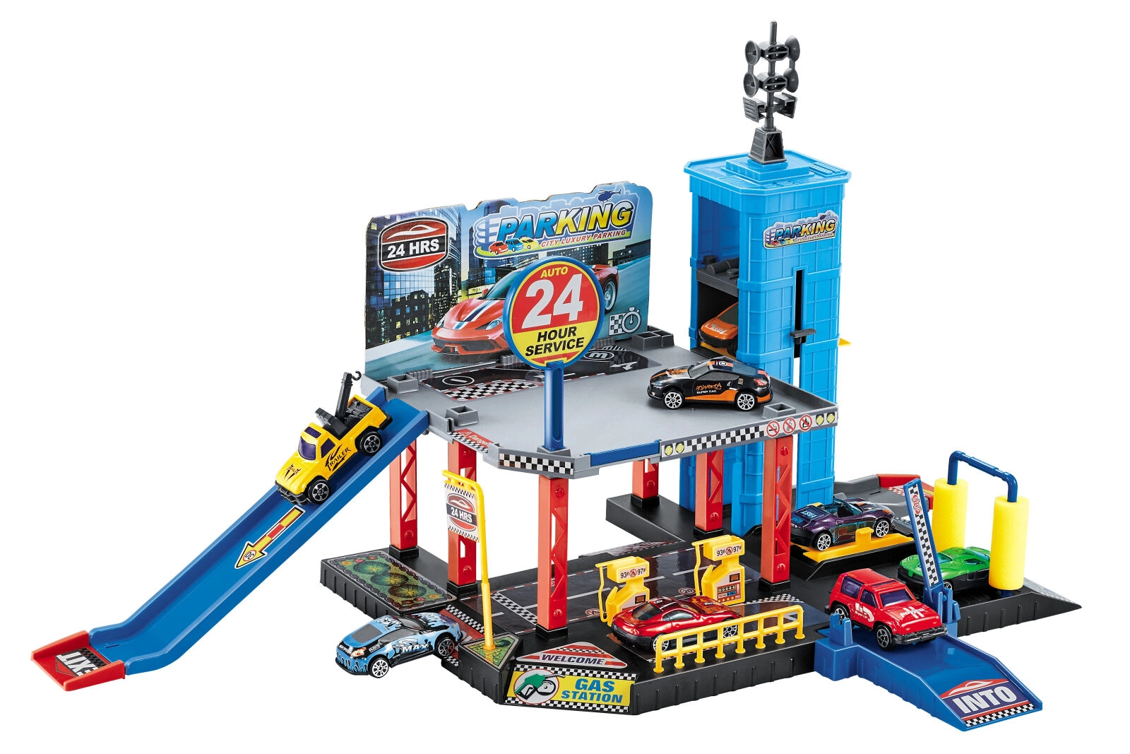 Descubre el mundo del aparcamiento, el repostaje y la velocidad con un garaje que estimula la imaginación infantil y la motricidad fina. Gracias al ascensor, los niños pueden mover fácilmente los cochecitos entre pisos y en la gasolinera repostar antes de seguir el viaje.