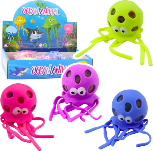 Divertido y relajante pulpo con bolitas de gel, un excelente juguete sensorial para niños y adultos. Al presionarlo, las bolitas asoman a través de los orificios, creando un agradable efecto táctil y visual. Gracias a su material suave y elástico, se aprieta cómodamente, ayuda a reducir el estrés y favorece la motricidad fina.