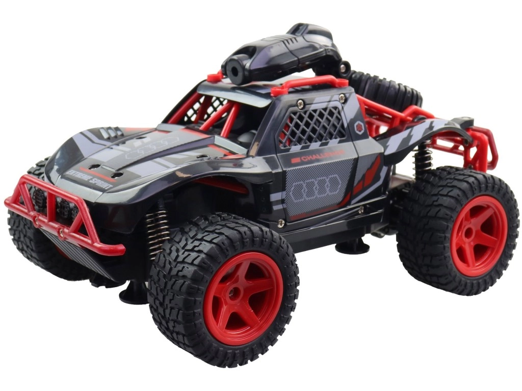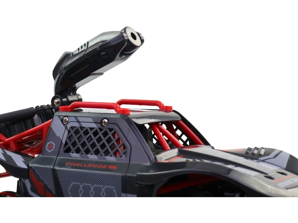 Este coche RC off‑road con cámara HD ofrece una experiencia de conducción real gracias a la transmisión de imagen directamente al smartphone. A través de Wi‑Fi ves la escena en directo en HD y con la app o el mando controlas fácilmente dirección y velocidad. El chasis robusto, los amortiguadores de muelle y las ruedas grandes con dibujo profundo garantizan seguridad en superficies irregulares y gran tracción.