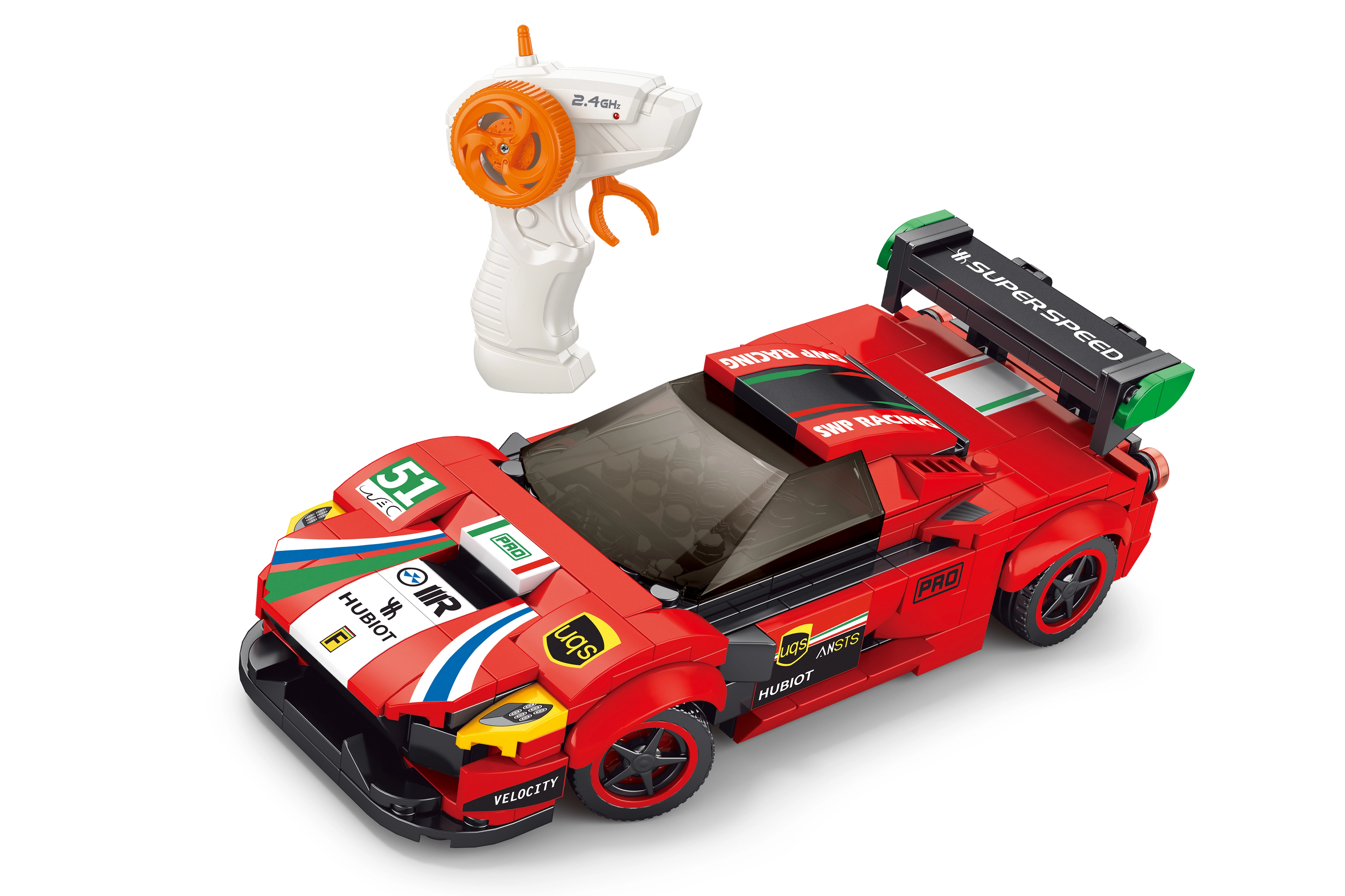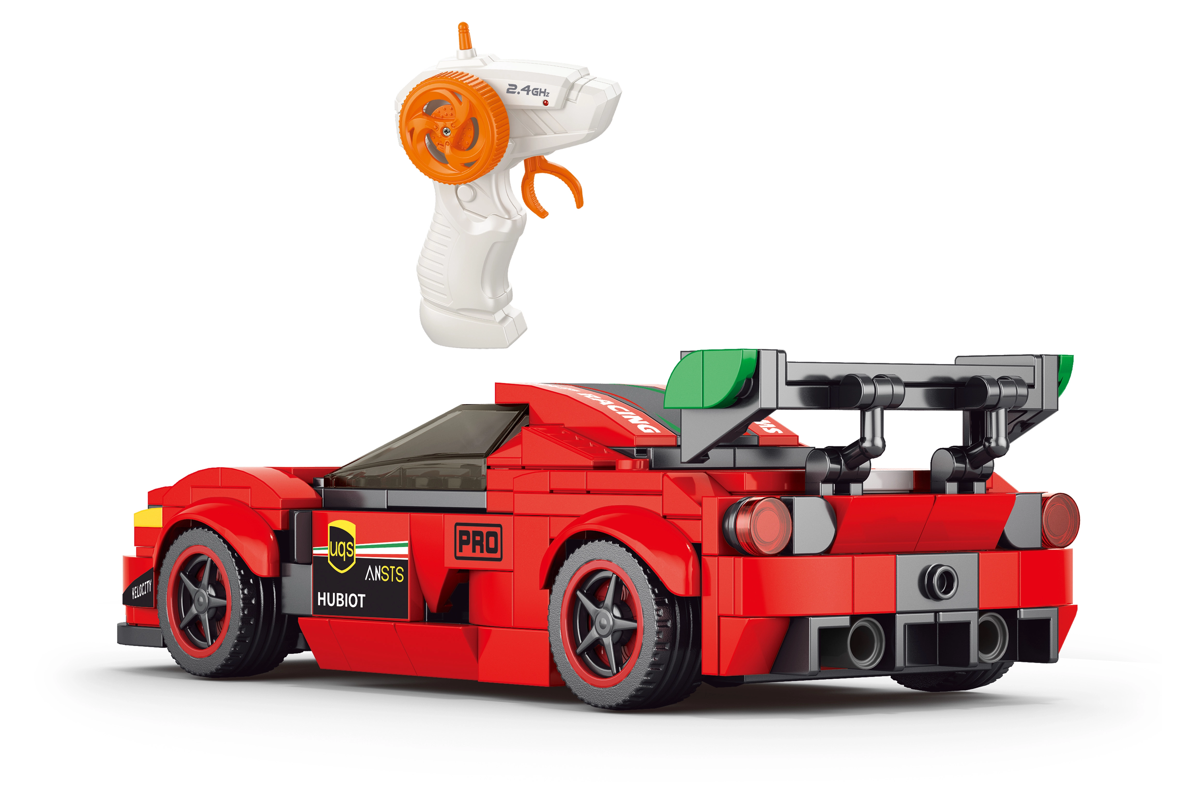 Construye tu propio coche RC con mando tipo pistola y disfruta de una gran diversión. El set incluye 279 piezas, un paquete de baterías 3.7V 350 mAh Li‑ion, cable USB y un claro manual ilustrado. Gracias a la frecuencia de 2.4 GHz, el control es fluido y sin interferencias.