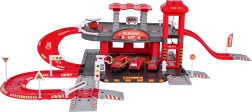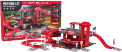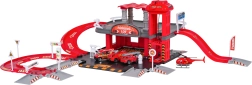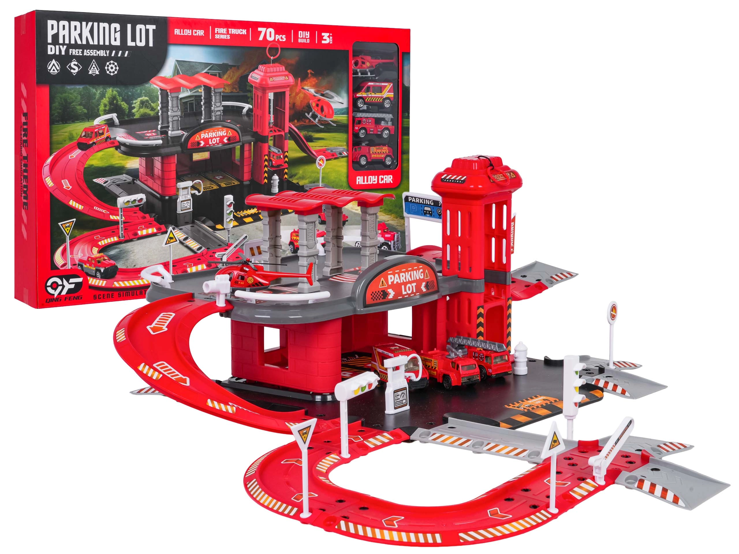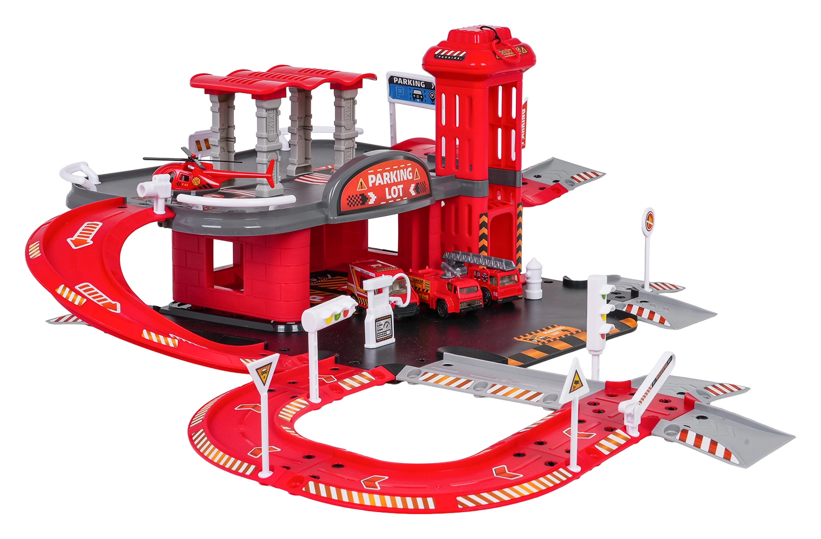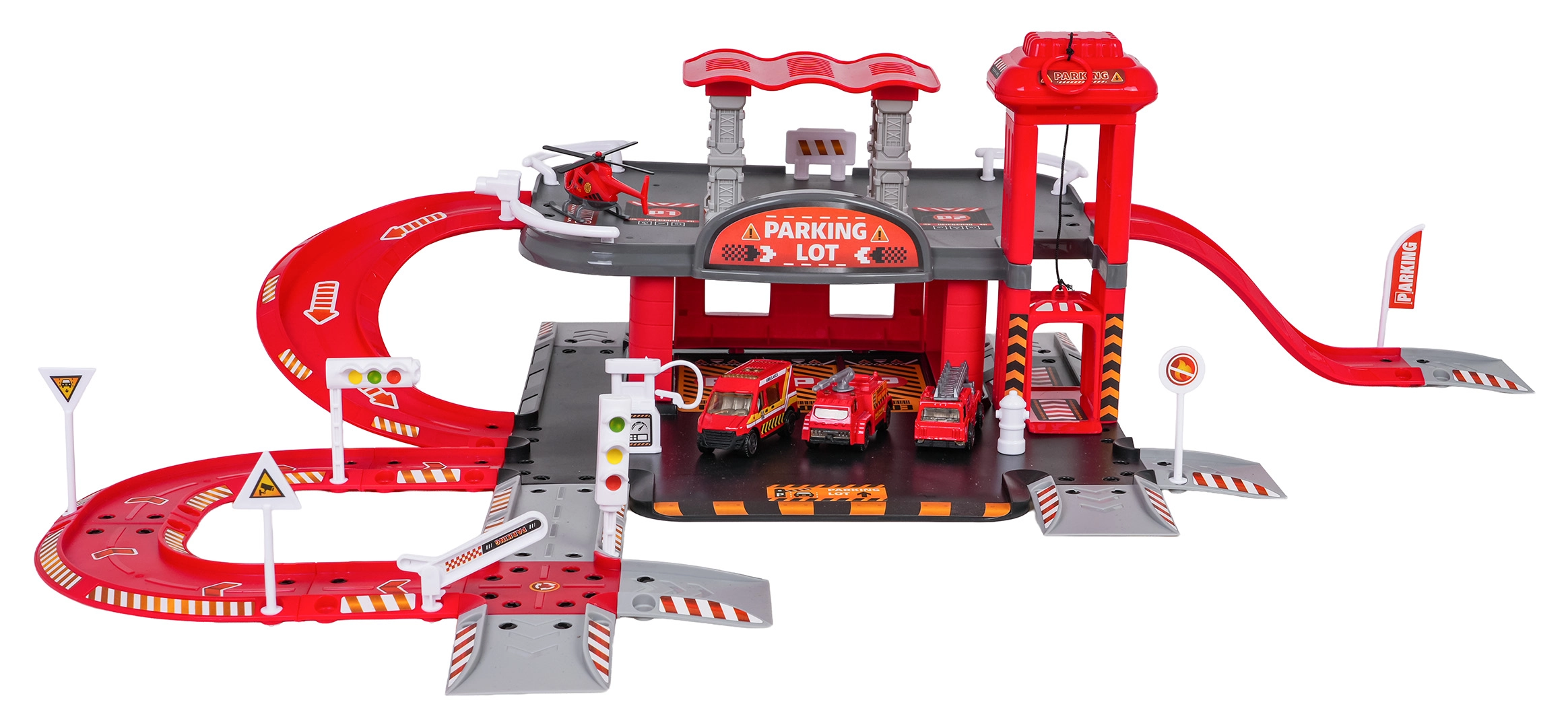 Este set de estación de bomberos, elaborado con detalle, combina diversión y desarrollo de habilidades. Los niños pueden repostar en la gasolinera, conducir por la carretera, subir el vehículo al piso con el ascensor manual y aparcar en las plazas designadas. Desde el piso superior los vehículos regresan en el ascensor o descienden a toda velocidad por la rampa helicoidal.
