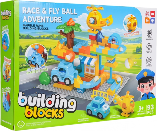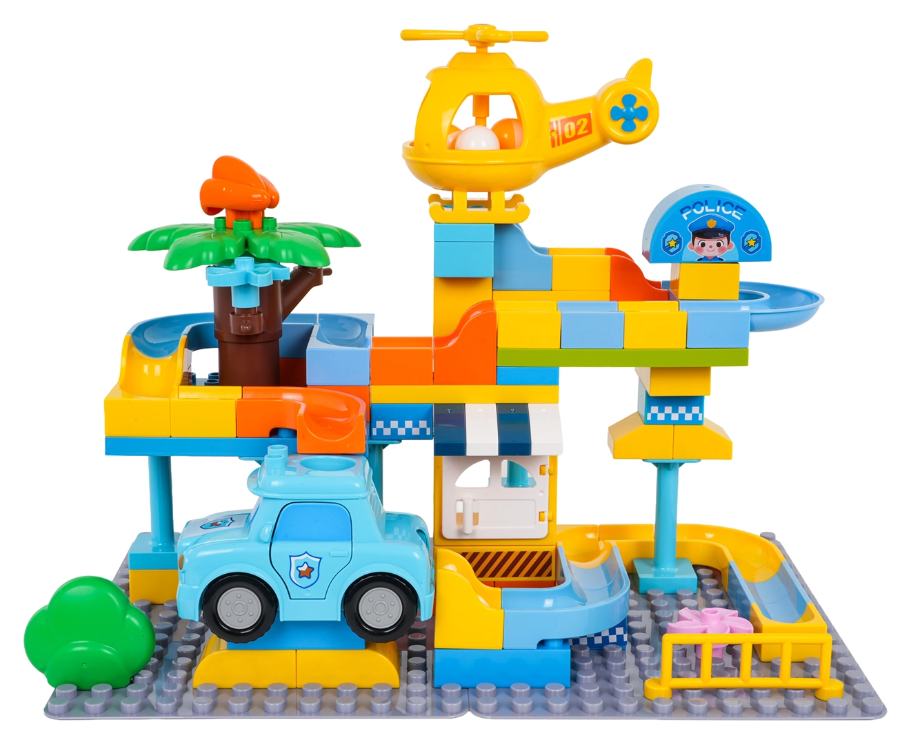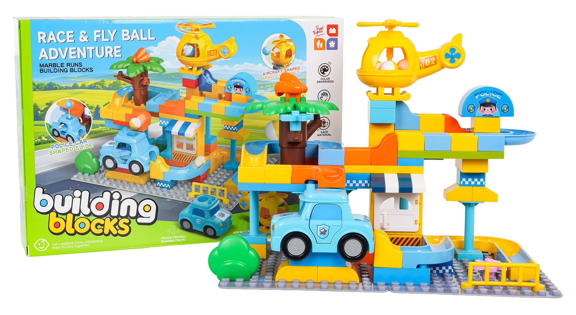 El paquete incluye coche de policía, helicóptero y 3 pelotas. Un detalle bien diseñado —los orificios en el coche y en el helicóptero— permite que las pelotas los atraviesen y añade una nueva dimensión al juego. El set está fabricado con materiales de calidad y seguros y es adecuado para niños a partir de 3 años.
