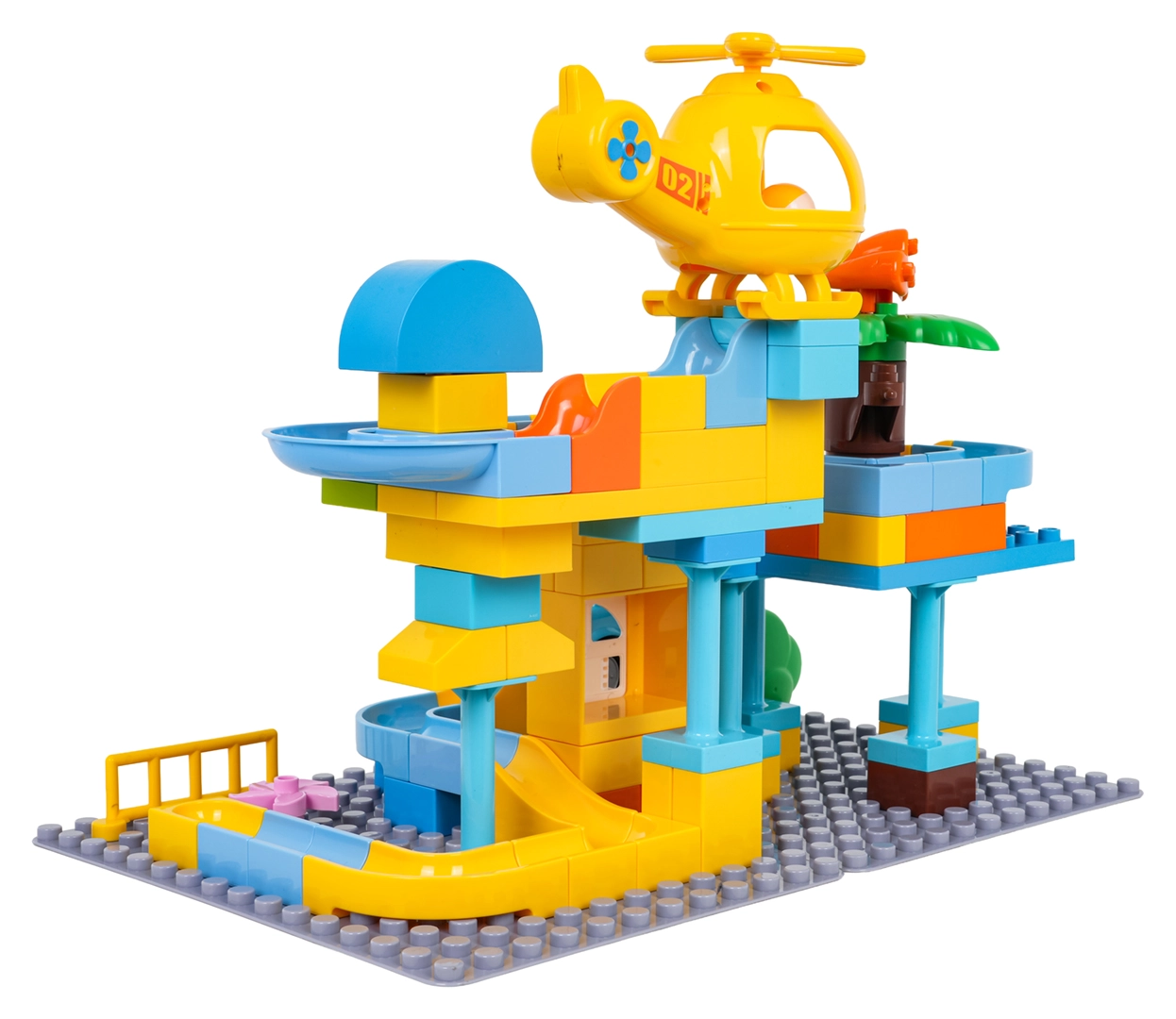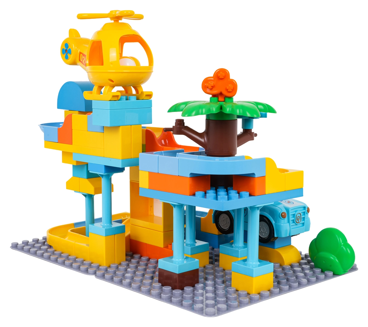 - Juego creativo: construir, hacer correr el coche por las rampas, aterrizar el helicóptero.