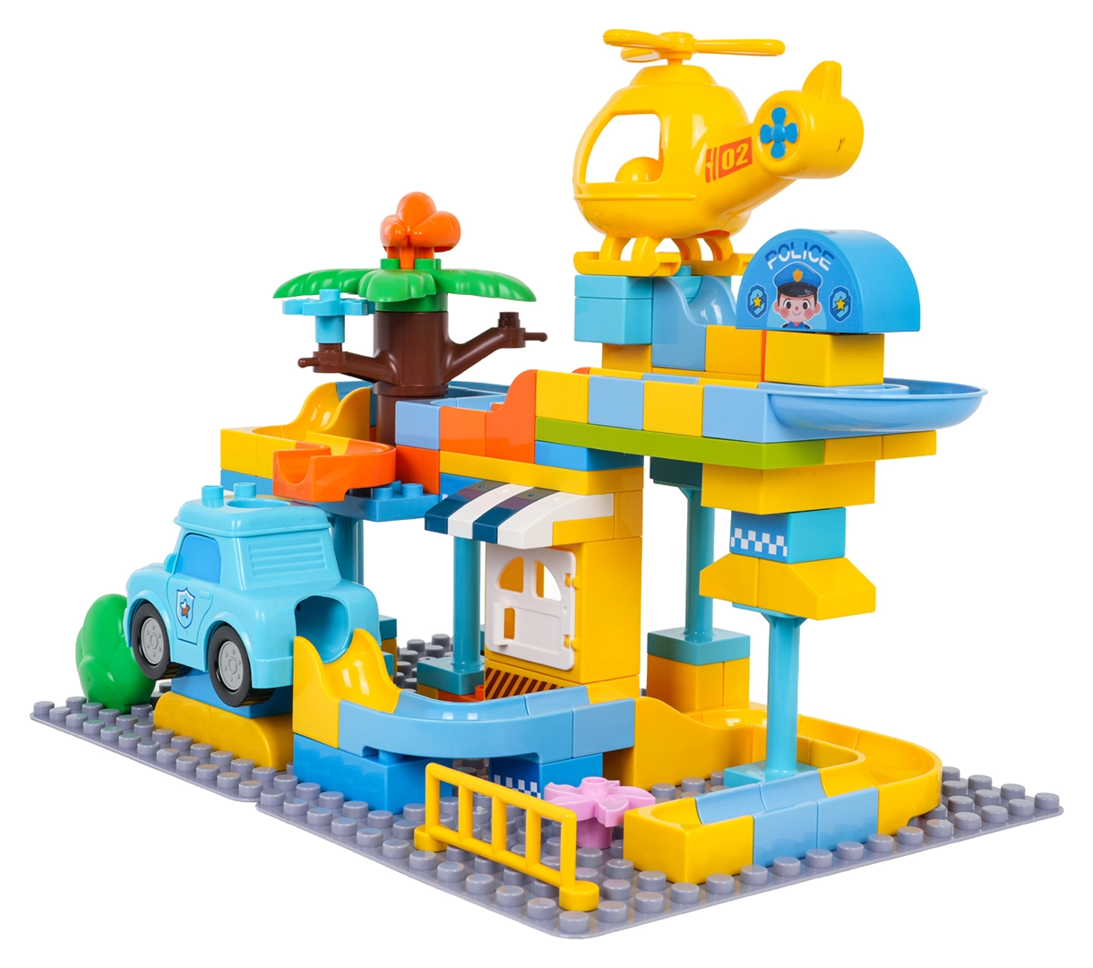 Este gran set de construcción permite a los niños crear su propia estación de policía con tobogán, rampas y zona de aterrizaje para el helicóptero. Los bloques de fácil conexión se mantienen firmemente unidos y, gracias a los colores brillantes, estimulan de forma natural la imaginación y la concentración infantil.