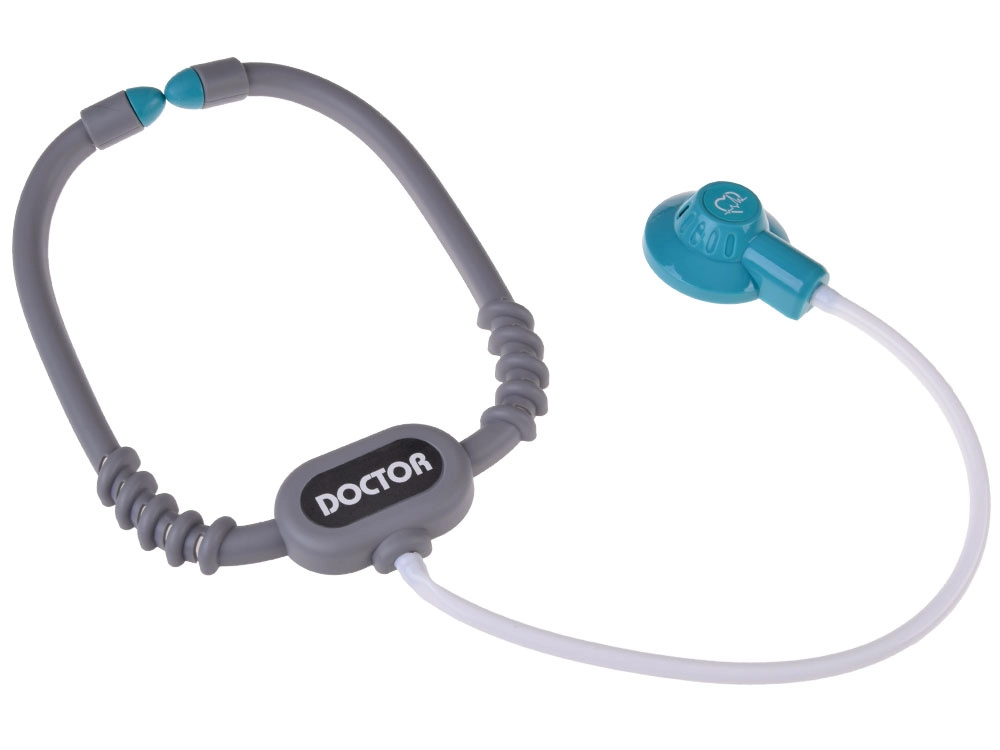 El estetoscopio emite pitidos, el termómetro señala y se ilumina con LED rojo, el espejo dental tiene LED blanco y la lámpara ofrece una luz cálida e intensa. El ECG reproduce latidos y pitidos: una atmósfera como en la consulta.