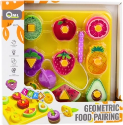 Un colorido rompecabezas con forma de fruta y piezas geométricas sobre una base de 20 × 20 cm que desarrolla el pensamiento lógico, la motricidad fina y las habilidades de coordinación. Los niños encajan las formas en los huecos correctos, aprenden colores y formas y, gracias a la simpática “oruga”, además entrenan la destreza ensartando. Su diseño seguro y colores atractivos invitan a aprender jugando en casa y en el jardín de infancia.