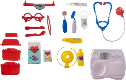 - Equipamiento completo para un juego realista: p. ej., estetoscopio, jeringa, termómetro, gafas y botellitas para medicina.