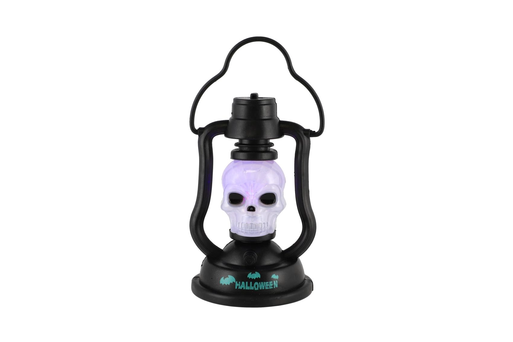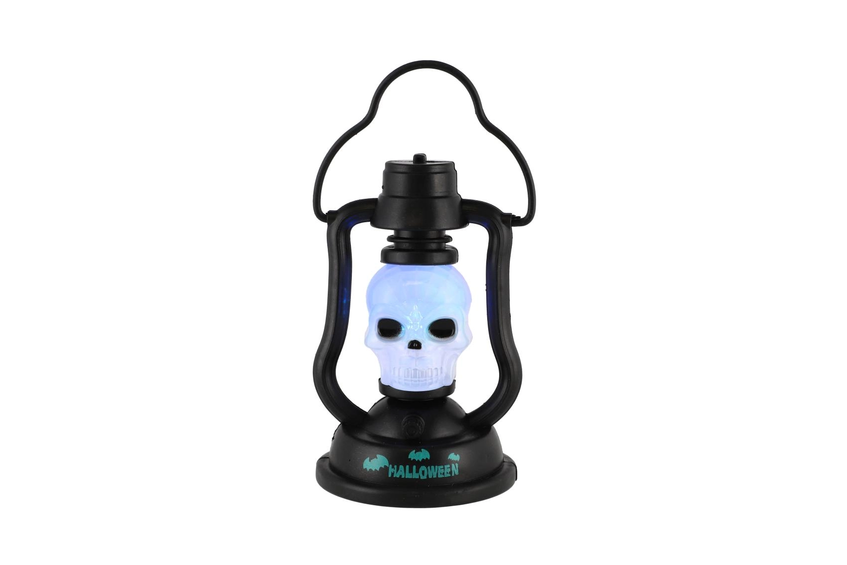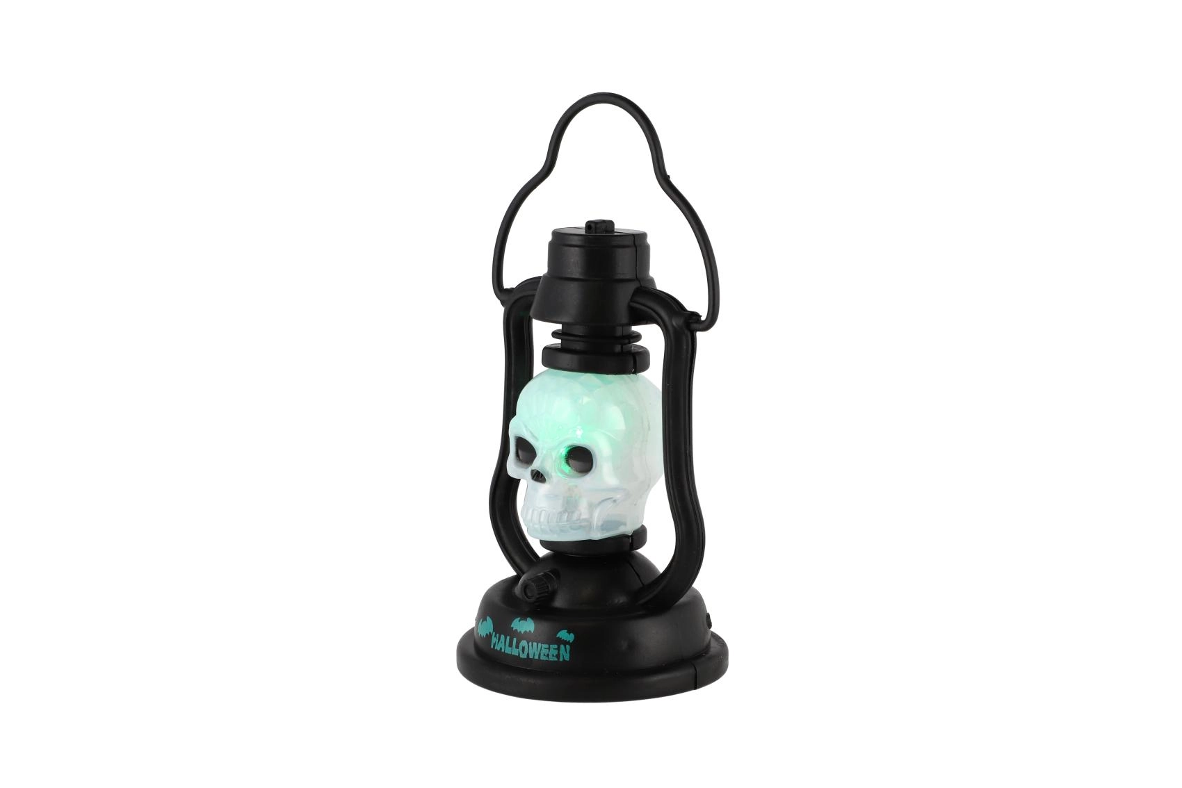 La calavera translúcida dentro de la linterna genera un brillo intenso que realza la atmósfera tenebrosa de cualquier decoración de Halloween.