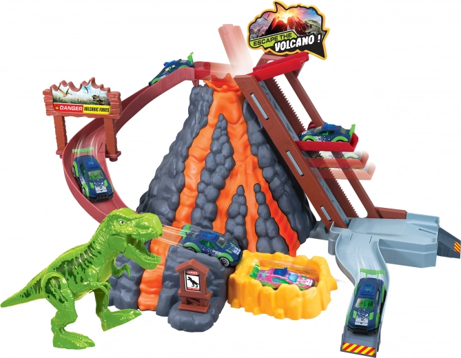 Esta divertida pista con volcán ofrece a los niños un juego dinámico lleno de sorpresas. Sube el cochecito con el ascensor hasta la cima, lánzalo por el descenso y observa cómo escapa de la “lava” del volcán. Luego sumérgelo en el baño de agua preparado y disfruta del cambio de color instantáneo.