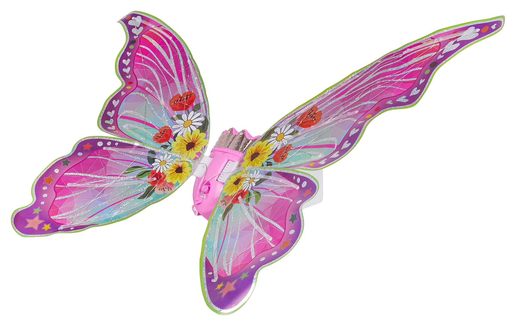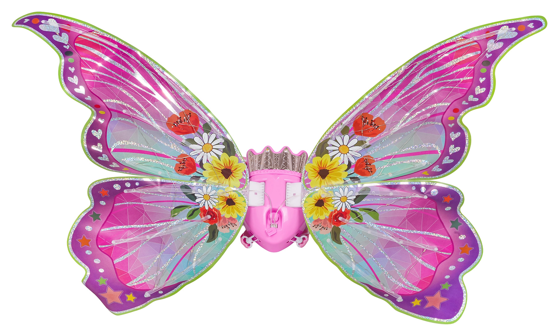 Alas de colores con lucecitas LED y aleteo que ofrecen modos con luz, parpadeo y música: el máximo encanto en cada juego.