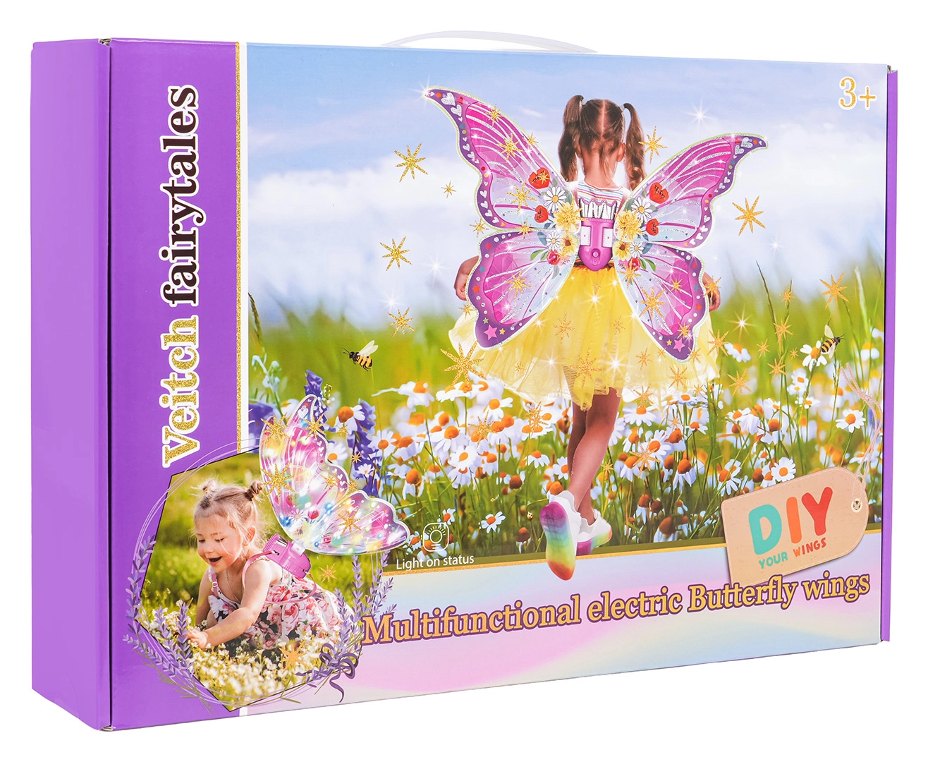 Las alas de mariposa ofrecen varios modos: música + aleteo + efectos de luz, aleteo + luces, aleteo + luces parpadeantes y aleteo solo. Los tirantes ajustables garantizan una fijación cómoda, la estructura ligera y las lucecitas LED multicolor aportan un ambiente mágico a cada juego.