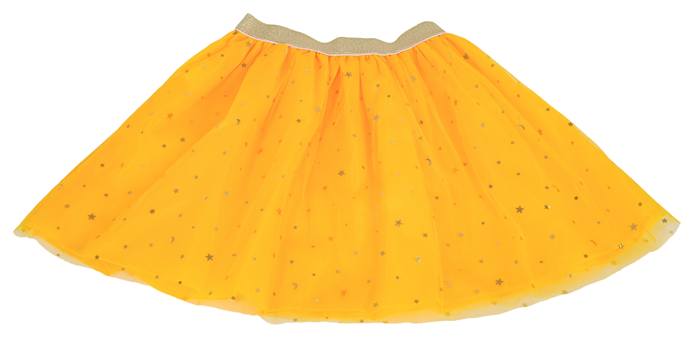 Falda de tul ligera con purpurina y cintura elástica que se adapta perfectamente y permite libertad de movimiento al bailar y jugar.