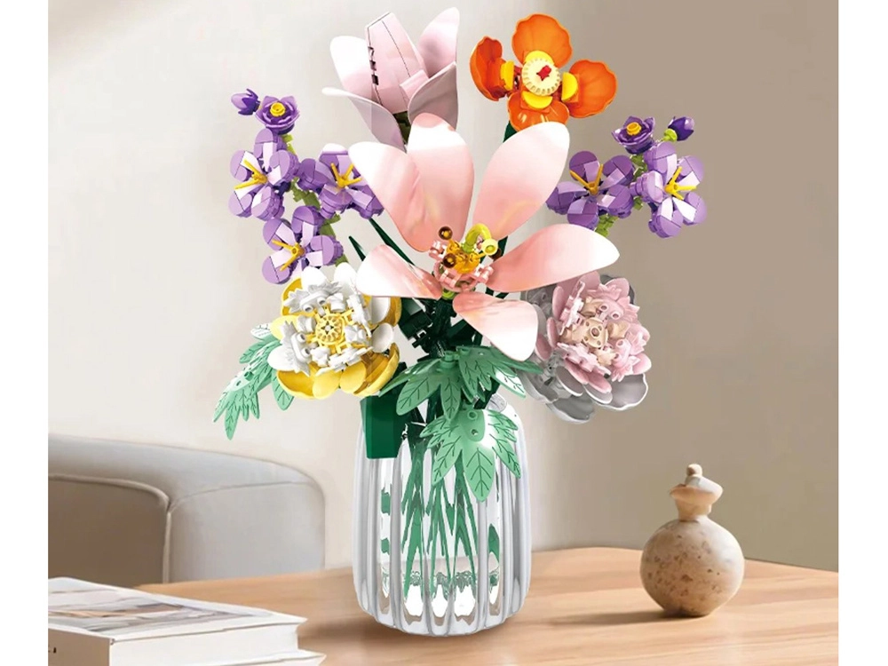 Este set de construcción de diseño convierte los momentos de montaje en un descanso agradable y da como resultado un ramo realista que iluminará el salón, el despacho o el dormitorio. Gracias a las formas bien pensadas y los colores vivos, las flores parecen naturales y atraen la atención como una decoración interior original.