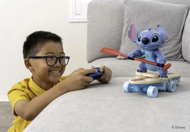 El surfista RC STITCH ofrece a los niños una conducción llena de acción y mucha imaginación. Contrólalo con un mando simple y observa cómo se desliza por el suelo, gira y sigue adelante incluso tras pequeños choques: después de una caída, se pone de pie por sí mismo. Gracias a la frecuencia de 2,4 GHz, el control es fluido y sin interferencias.