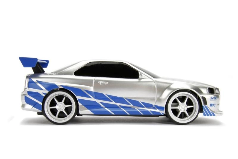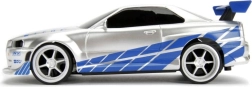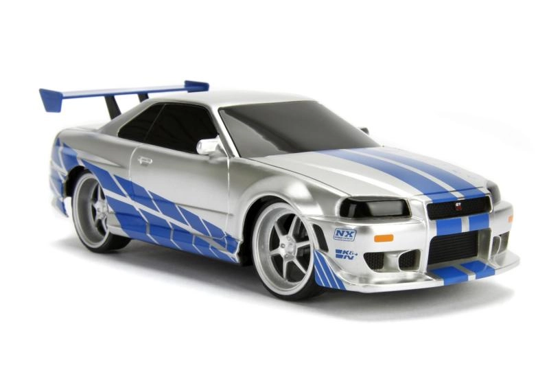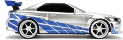 Acabado detallado en plata‑azul con calcas, alerón y llantas deportivas que encantará a los fans de A todo gas y a los coleccionistas de modelos.