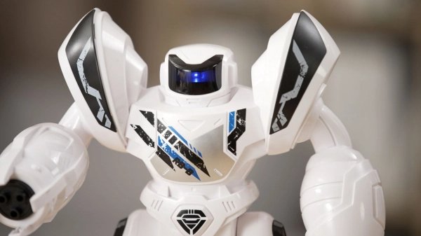 El robot está equipado con rostro LED, efectos de sonido y un lanzador de proyectiles para una experiencia de juego aún más intensa. Piernas estables, brazos articulados y una construcción resistente garantizan una postura firme y una larga durabilidad incluso en misiones más movidas.