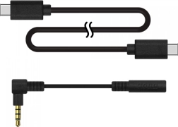 - Unidad de cámara, base (soporte con forma de tubería warp), cable USB‑C a USB‑C, adaptador estéreo de 3,5 mm en ángulo recto