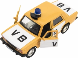 El elegante modelo de coche de policía VB Lada encantará a cualquier pequeño policía. Ofrece mecanismo de retroceso, efectos de luz y sonido, puertas delanteras abatibles y un tamaño compacto de 12 cm. Las pilas 3× AG3 están incluidas en el paquete.