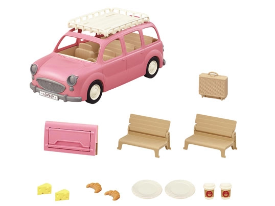 Descubre la magia de las excursiones en grupo con la furgoneta familiar de picnic SYLVANIAN FAMILIES, un espacioso vehículo rosa para hasta 8 figuras. Ofrece asientos traseros abatibles, tapa del maletero extraíble que sirve como mesa, un práctico portaequipajes de techo con cesta de picnic e incluso una superficie de juego para rayuela. Perfecta para juegos realistas y picnics familiares al aire libre.