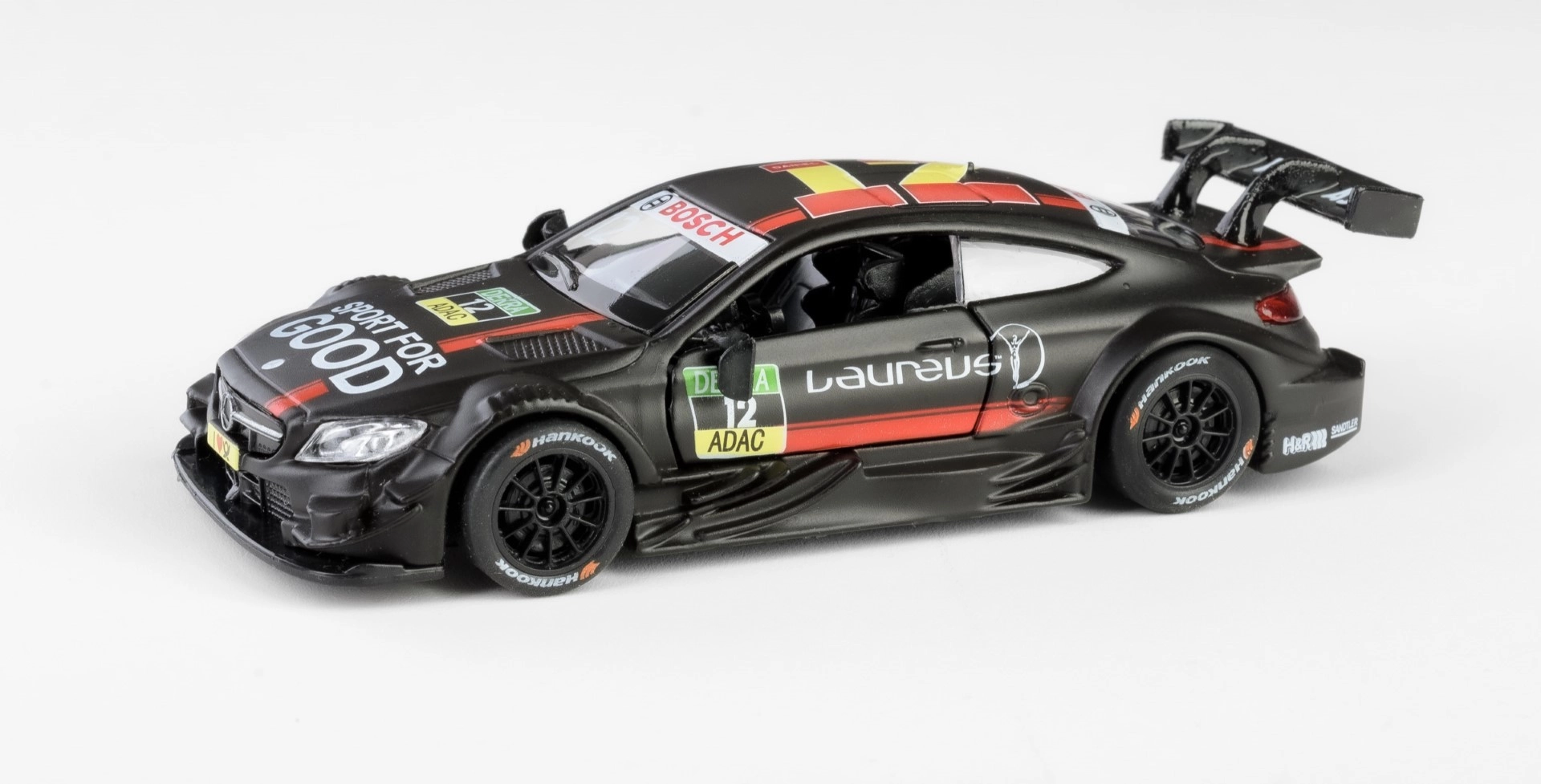 La combinación de carrocería metálica con componentes de plástico asegura resistencia y larga vida útil. Los neumáticos de goma aportan mejor agarre y un aspecto fiel al auténtico coche de carreras de la serie DTM. Apto para niños a partir de 3 años y para coleccionistas adultos.