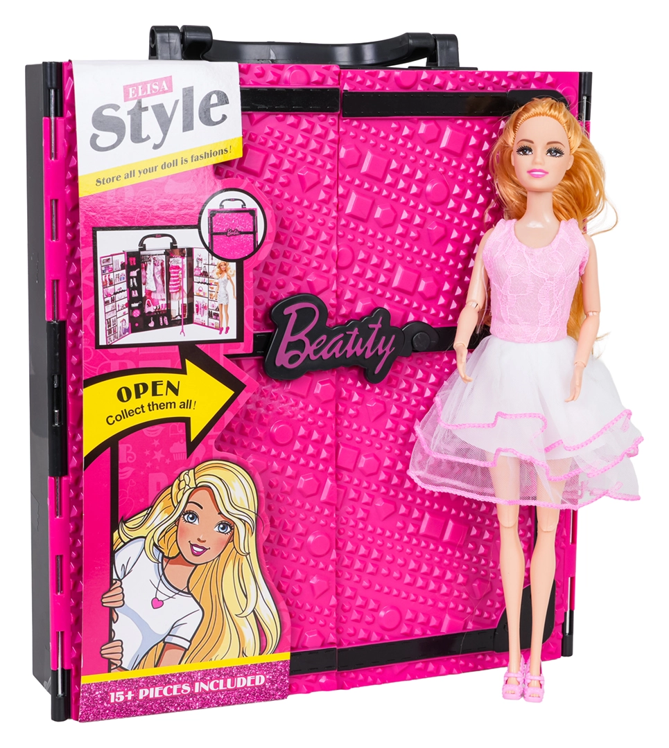 El armario tiene una práctica asa para transportarlo fácilmente, para que tu peque se lo lleve de visita o de viaje. La muñeca, con pelo largo, es ideal para peinar y trenzar y sus brazos, piernas, codos y rodillas articulados permiten posar de forma realista.