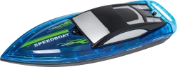 Disfruta de la adrenalina en el agua con esta rápida lancha RC de carreras para niños a partir de 8 años. Gracias al control de 2,4 GHz, iluminación LED y sensor de seguridad que solo activa en el agua, la conducción es divertida y segura. La construcción resistente y el diseño esbelto y aerodinámico garantizan estabilidad y alta velocidad. En el paquete no faltan el acumulador recargable, el cable USB, hélices de repuesto ni el práctico soporte.