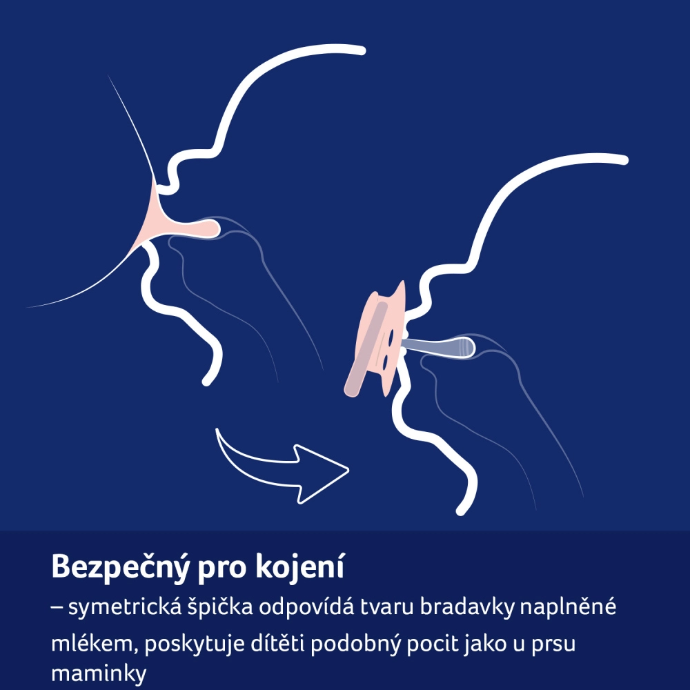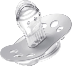La silicona homogénea se contrae y se expande rítmicamente durante la succión. La forma aplanada y simétrica favorece el movimiento correcto de la lengua y el cierre natural de la boca.
