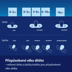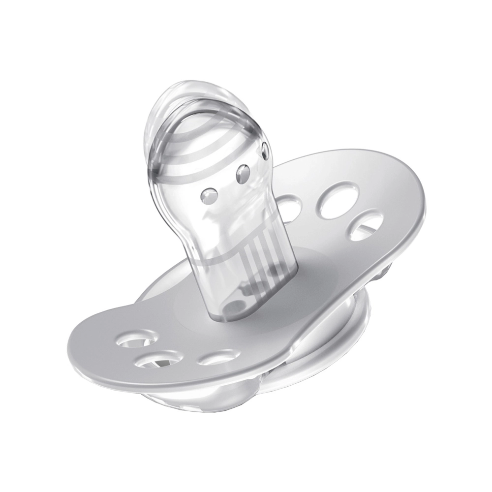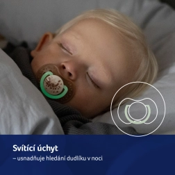 El escudo ergonómico con orificios de ventilación es delicado con la piel. El asa luminosa facilita encontrar el chupete rápidamente durante la noche.