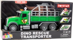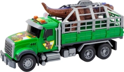 El transportador verde con dinosaurio es un juguete ideal para pequeños exploradores que aman los coches y el mundo prehistórico. Ofrece efectos de luz y sonido, una plataforma de carga abierta con jaula para transportar la figura y un acabado de plástico resistente. La figura del dinosaurio tiene extremidades articuladas, para que los niños puedan crear escenarios de juego llenos de aventura.