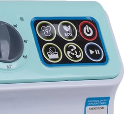 A los niños les encantará el panel con botones, el selector giratorio de temperatura y las funciones de inicio/parada. El manejo es intuitivo y recuerda a una lavadora real.