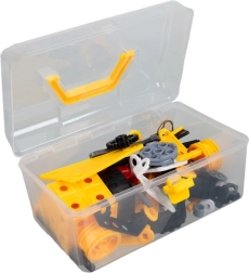 Ruedas, engranajes, tornillos, paneles, herramientas infantiles y manual ilustrado. Equipamiento completo para empezar fácilmente y crear combinaciones infinitas.