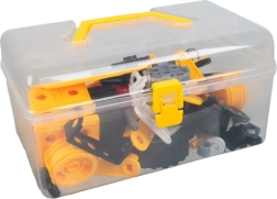 Este set de construcción para pequeños ingenieros incluye un amplio conjunto de piezas interactivas, como ruedas, engranajes, tornillos y herramientas, con las que los niños montarán diversos vehículos rodantes y sencillos modelos mecánicos. Todo se guarda de forma ordenada en un resistente estuche con asa, por lo que se transporta y almacena fácilmente.