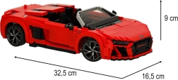 Este set detallado ofrece un modelo realista del AUDI R8 Spyder con líneas de carrocería, ruedas y cabina cuidadosamente diseñadas. Gracias al alto número de piezas crearás una maqueta precisa de 32,5 × 16,5 × 9 cm que destaca en una estantería o en la oficina.