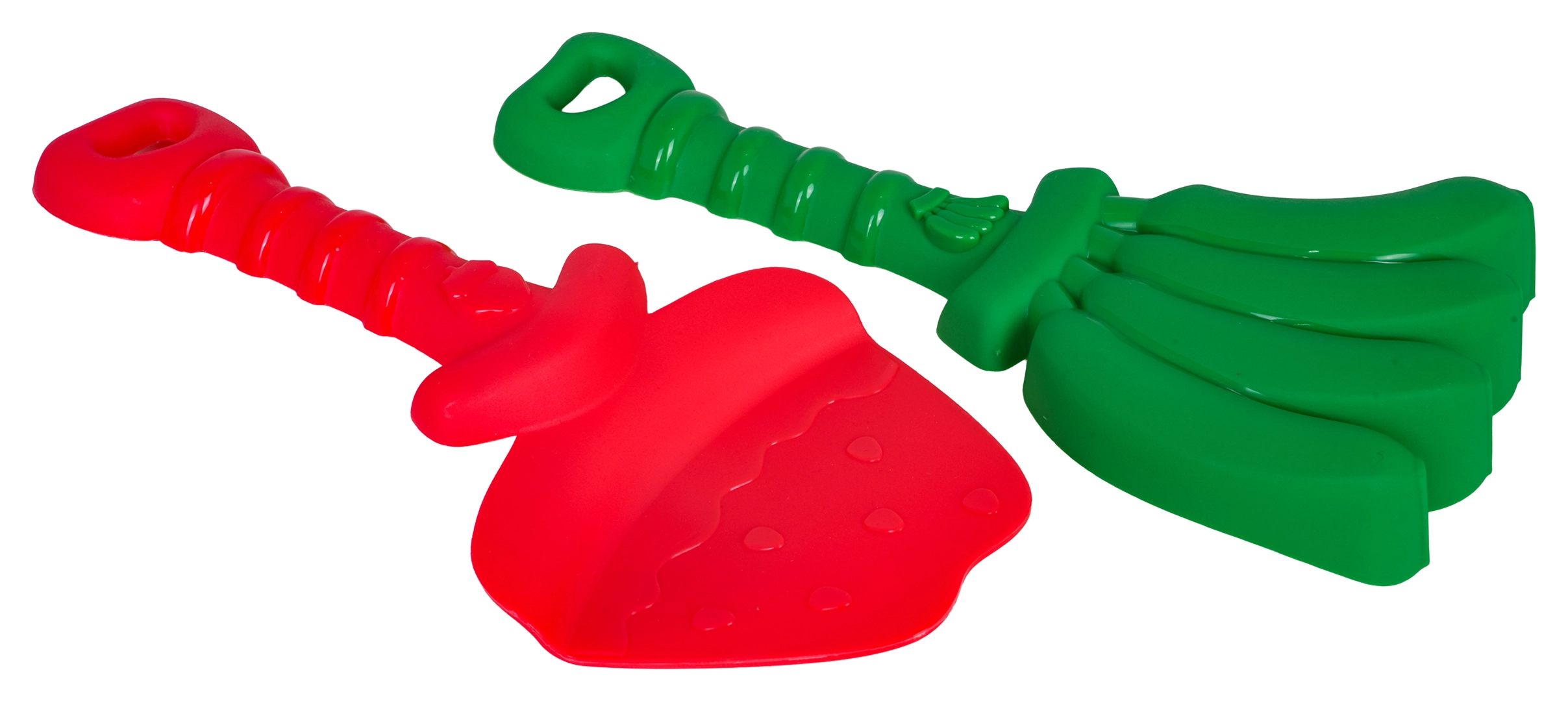 La pala, el rastrillo y la regadera permiten a los niños cavar, rastrillar, moldear y trasvasar agua: todo en un solo set.