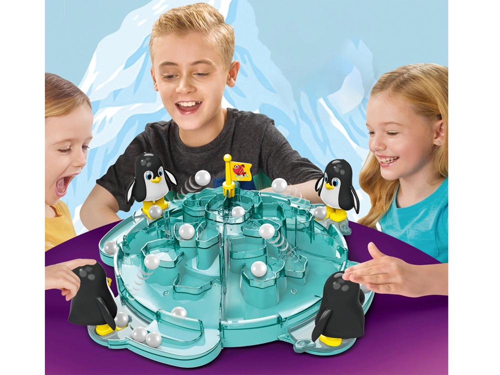 Divertido juego familiar con adorables pingüinos, donde deciden la rápida reacción, la precisión y el timing correcto. Presiona la cabeza del pingüino y lanza una bola de nieve a la montaña de hielo: ¡quien llene sus plataformas o acierte primero en la cima con la banderita gana! Ideal para 2–4 jugadores y niños a partir de 3 años.