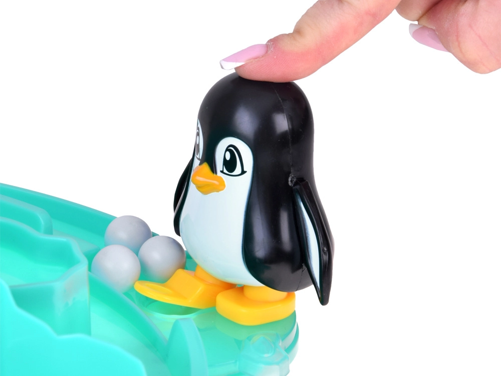 Presiona la cabeza del pingüino y envía la bola de nieve por la pista helada. Un mecanismo sencillo, divertido y fácil de usar incluso para niños pequeños.