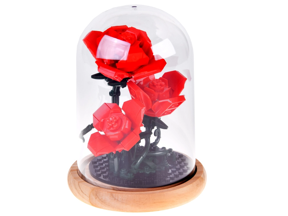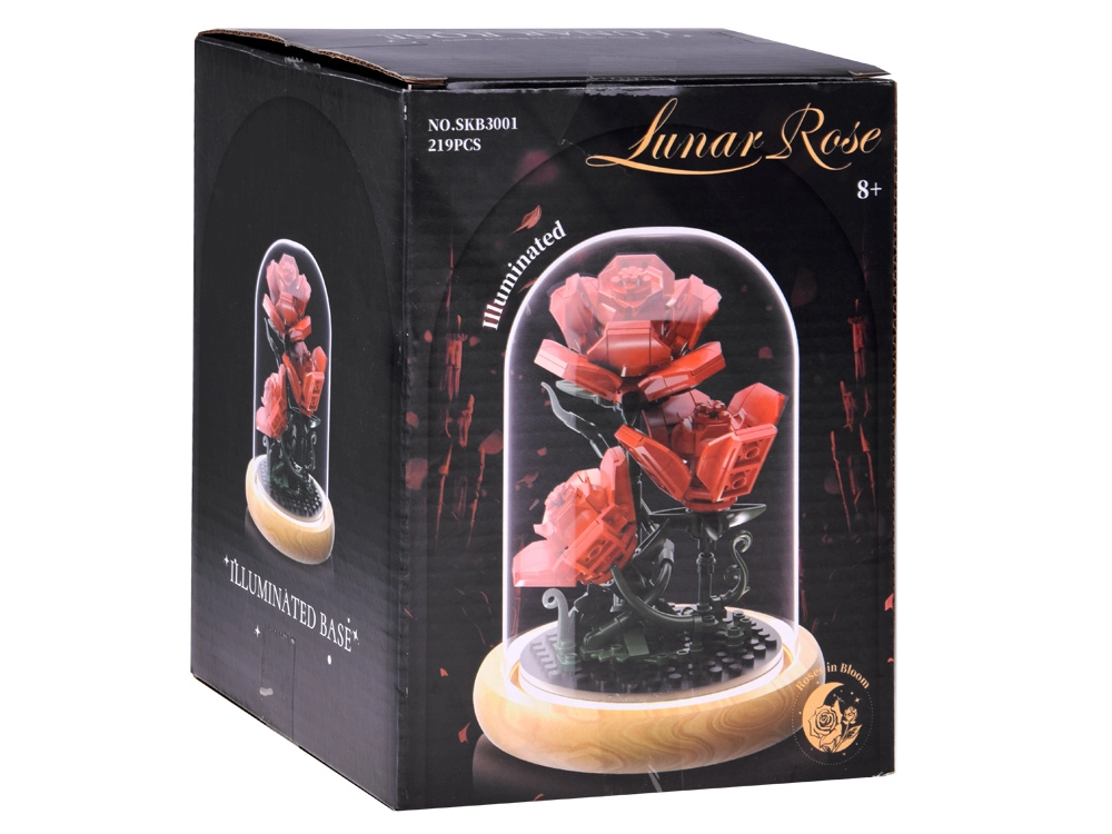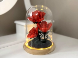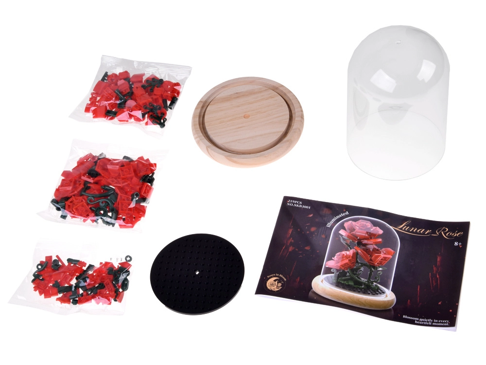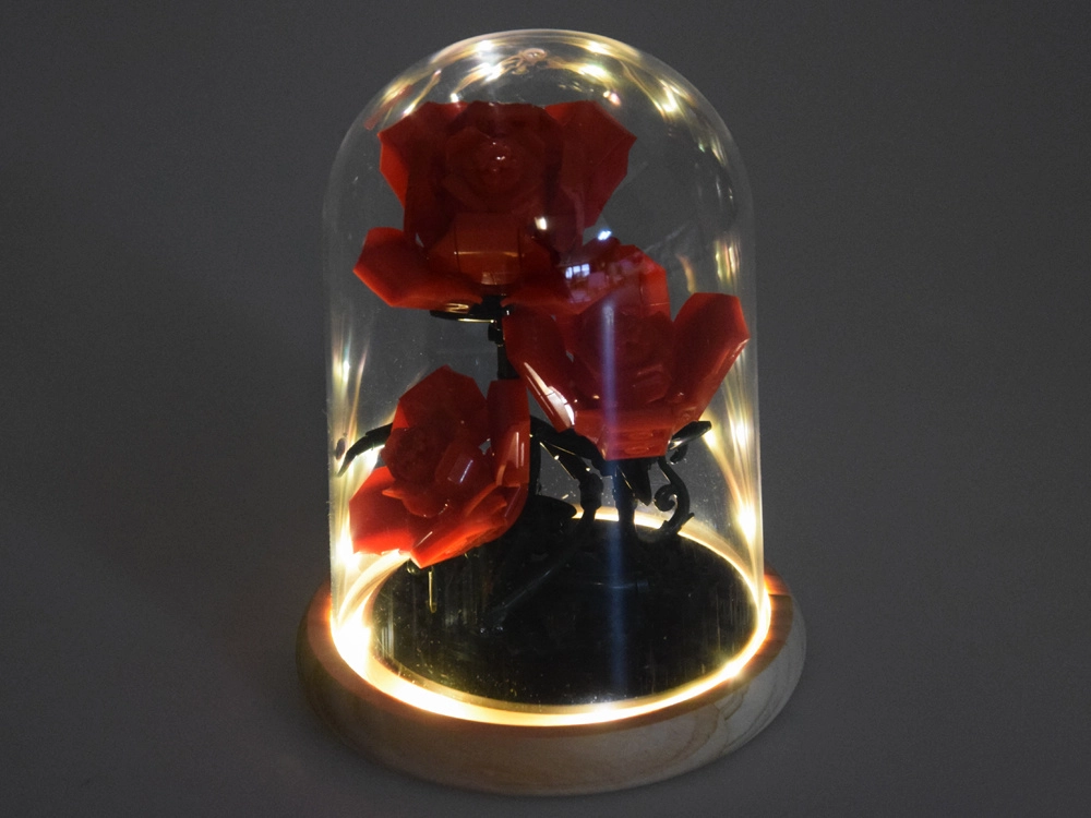 Este set de construcción de diseño combina montaje divertido con efecto decorativo. La rosa en una cúpula transparente parece una pequeña obra de arte y gracias a la iluminación LED cálida destaca especialmente por la noche. Las piezas de plástico resistentes se conectan fácilmente y mantienen la forma, de modo que el modelo terminado es estable y listo para exhibirse.