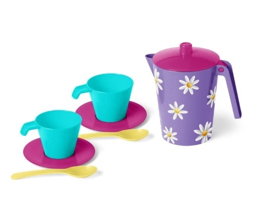 Este pequeño juego de café es un gran complemento para la cocinita infantil e ideal para jugar a la cafetería, al té de las cinco o a la fiesta de cumpleaños de las muñecas. La jarrita está decorada con gráfica IML con adorables margaritas y todas las piezas están cuidadosamente elaboradas para un uso cómodo y seguro.
