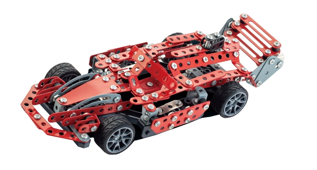 ¡Construye tu propio coche de carreras de metal! Este juego de construcción metálico de fórmula con 287 piezas combina componentes metálicos resistentes y accesorios de plástico que se unen mediante tornillos y tuercas. Ofrece un montaje divertido y a la vez exigente, y desarrolla la paciencia, la destreza y el pensamiento técnico: una elección perfecta para constructores pequeños y grandes.