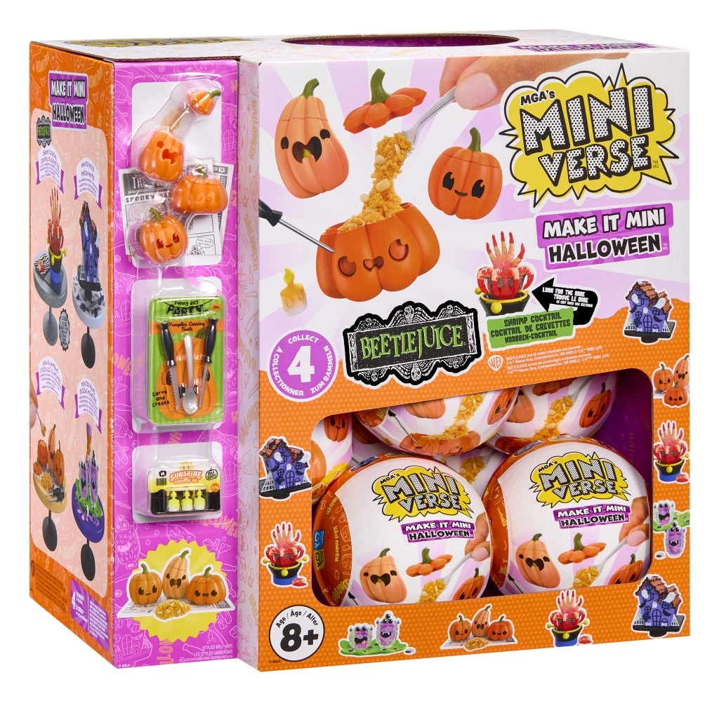 Cada cápsula redonda de MINI VERSE está sellada, así que nunca sabes qué set espeluznante te tocará: calabazas, bebidas, decoraciones y más.