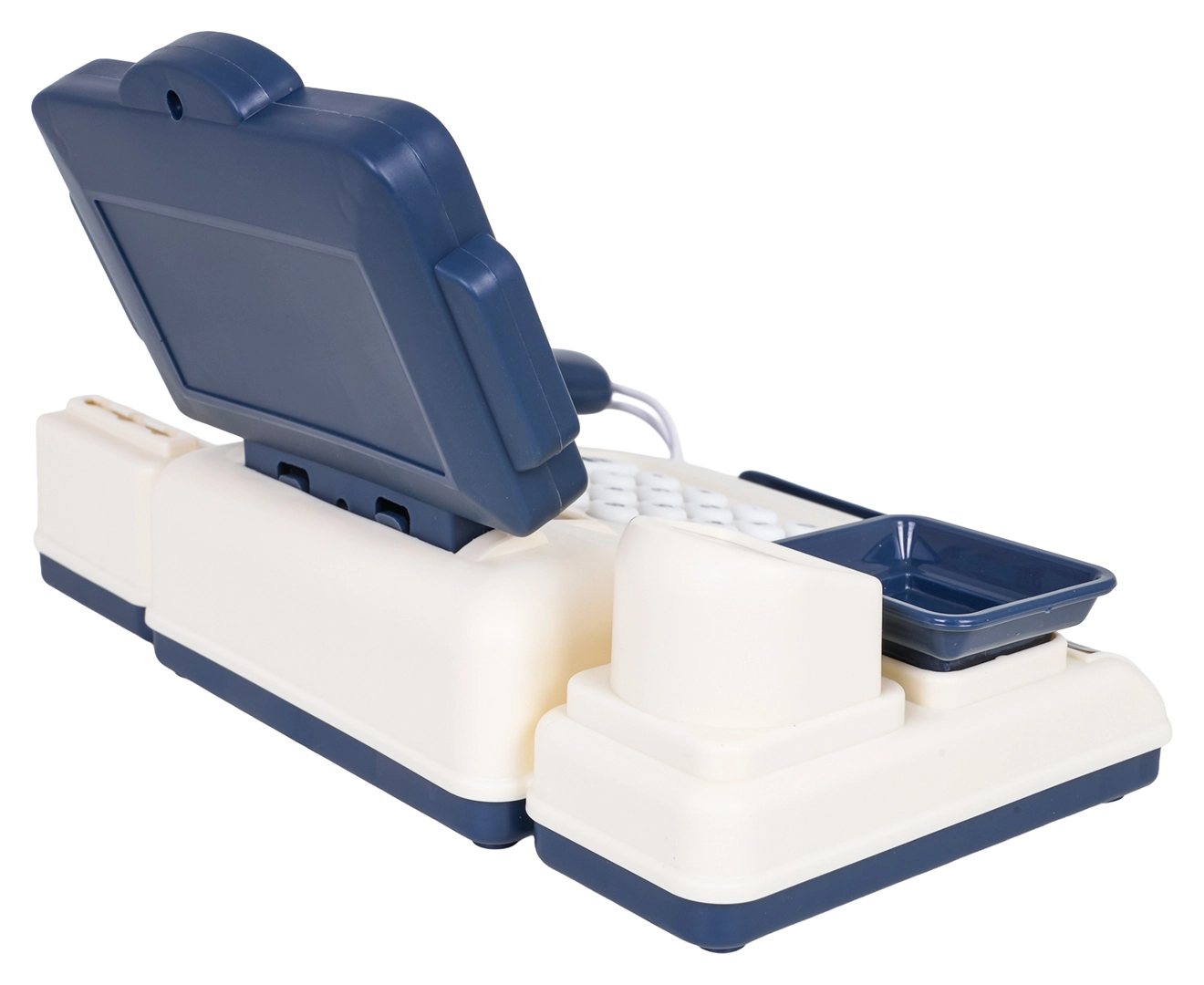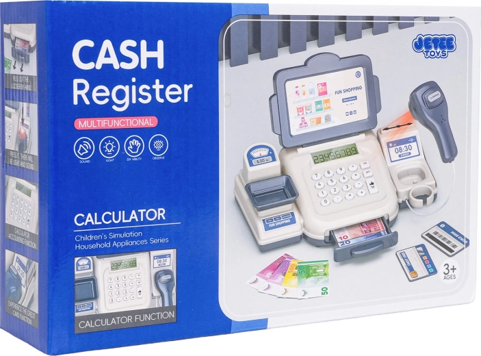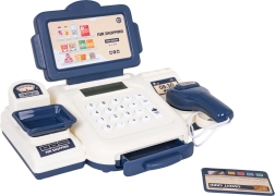 ¡Jugar a las tiendas nunca fue tan divertido! Esta caja registradora infantil en color azul y crema ofrece una calculadora funcional, escáner con luz y sonido, báscula y cajón portamonedas abatible. El paquete incluye también tarjeta de pago y billetes de papel, para que los pequeños vendedores practiquen el cálculo y los pagos sin efectivo.