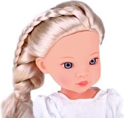 Esta elegante muñeca de aproximadamente 33 cm está hecha de plástico resistente y tiene brazos, piernas y cabeza articulados, por lo que se puede colocar fácilmente en distintas poses. El largo cabello rubio en trenza se puede peinar y estilizar, lo que potencia la creatividad y la motricidad fina.